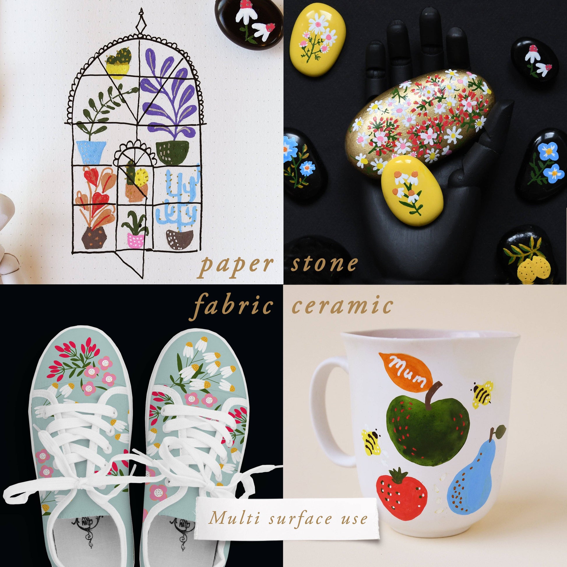 * Quality, Versatility and Multi Surface. You will enjoy diy, craft and art projects on many mediums from paper, card stock, bullet journaling, rock, stone, ceramic, plastic, fabric, canvas, wood slices. Suitable for light and dark surfaces