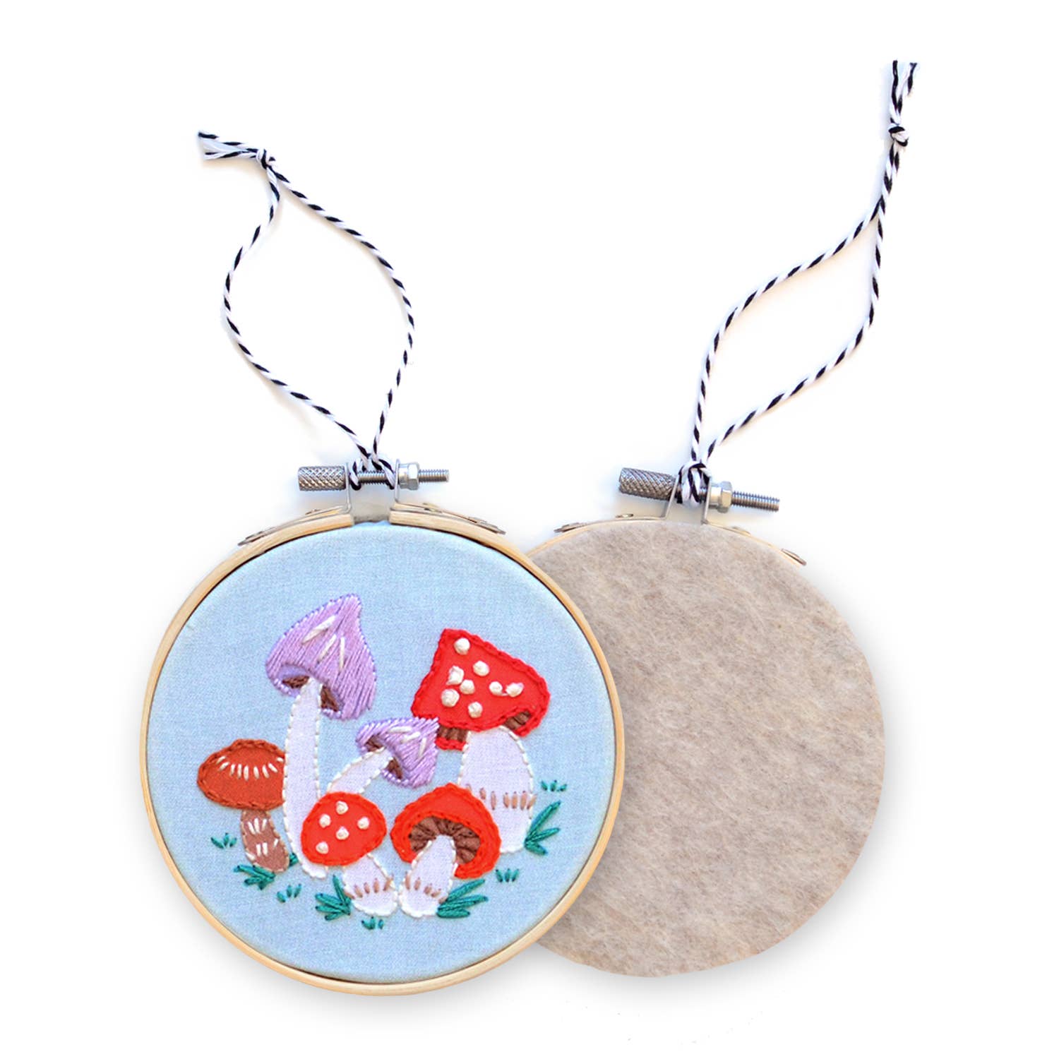 Embroidered Christmas Mushrooms DIY Ornament Kit