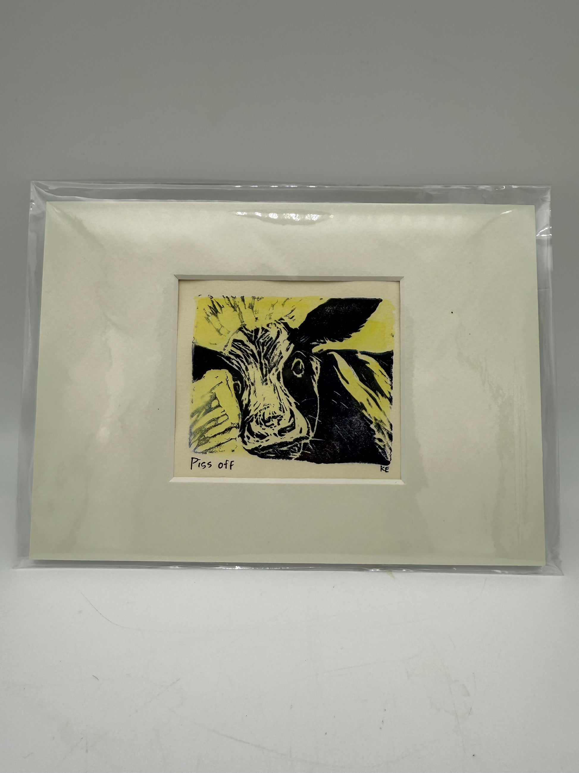Original Linocut Matted Print 5X7 - Mad Cow