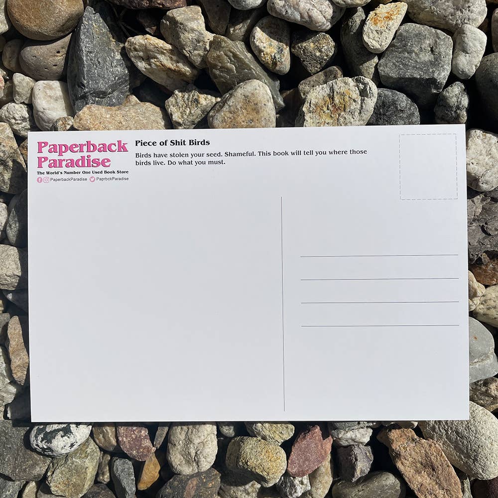 Back synopsis: Birds have stolen your seed. Shameful. This book will tell you where those birds live. Do what you must.