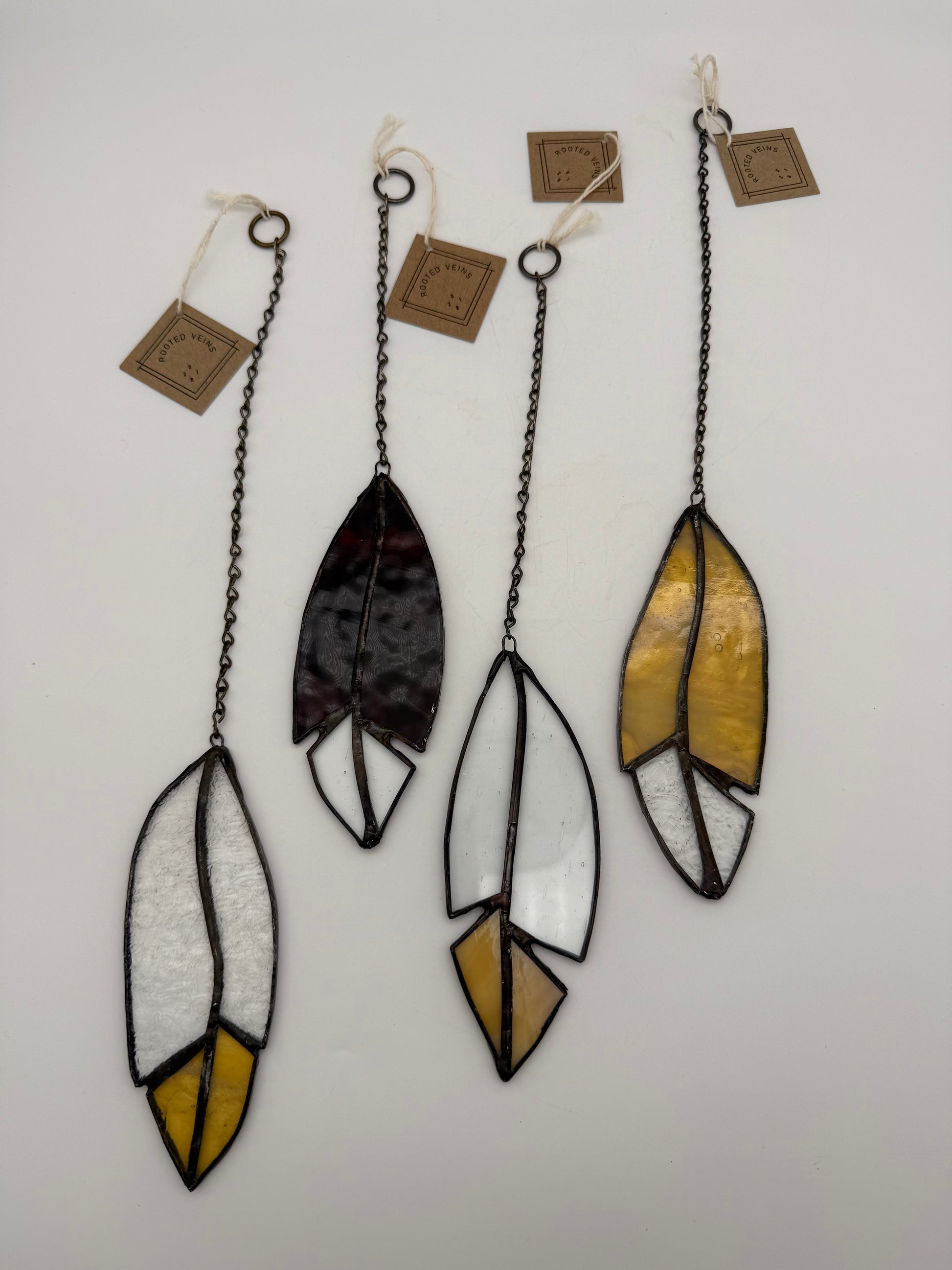 Cute single feathers on a chain. Please note that handmade designs vary by style and color.