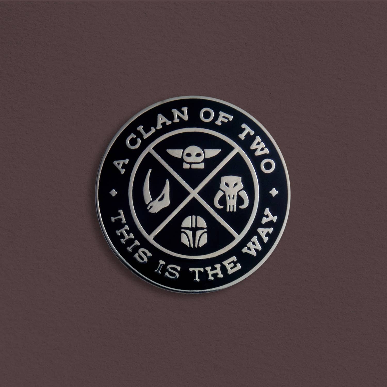 Stylized crest inspired by everyone's favorite clan of two: Din Djarin and Grogu.