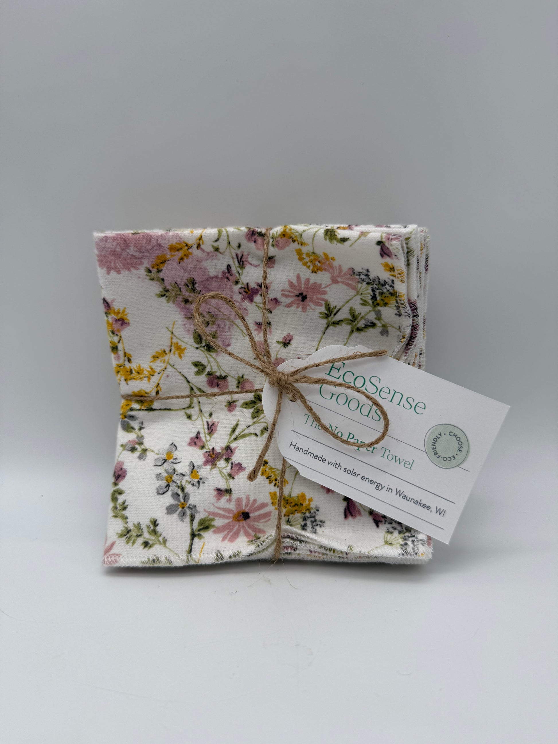 Reduce your paper use in a pretty, sustainable way. Each bundle includes 6 handy wipes you can grab and use just like a paper towel and toss in the wash instead of in the garbage.