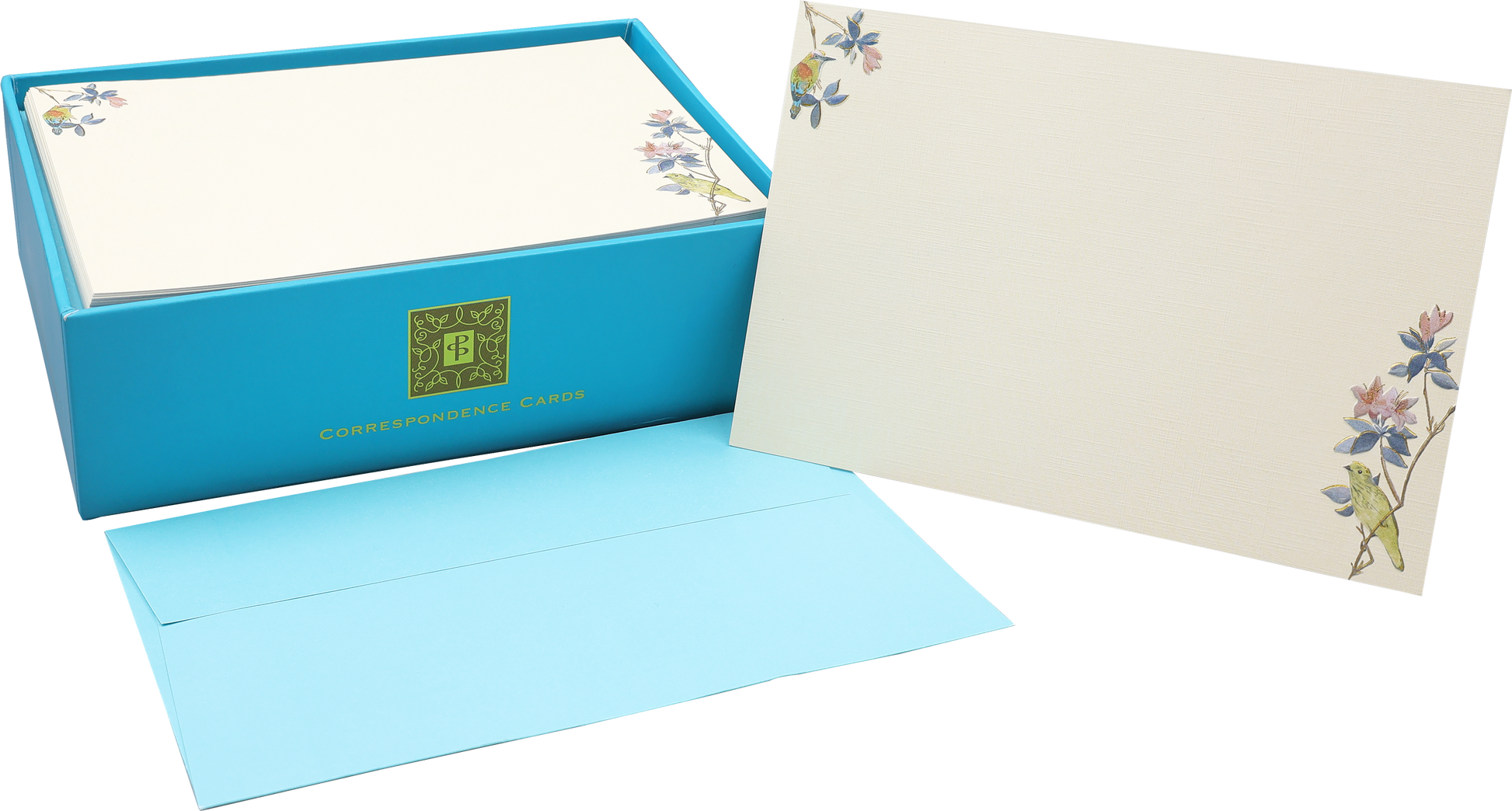 Elegantly crafted Bird Garden Correspondence Cards are adorned with a vibrant bird and flower motif and are suitable for a variety of occasions.