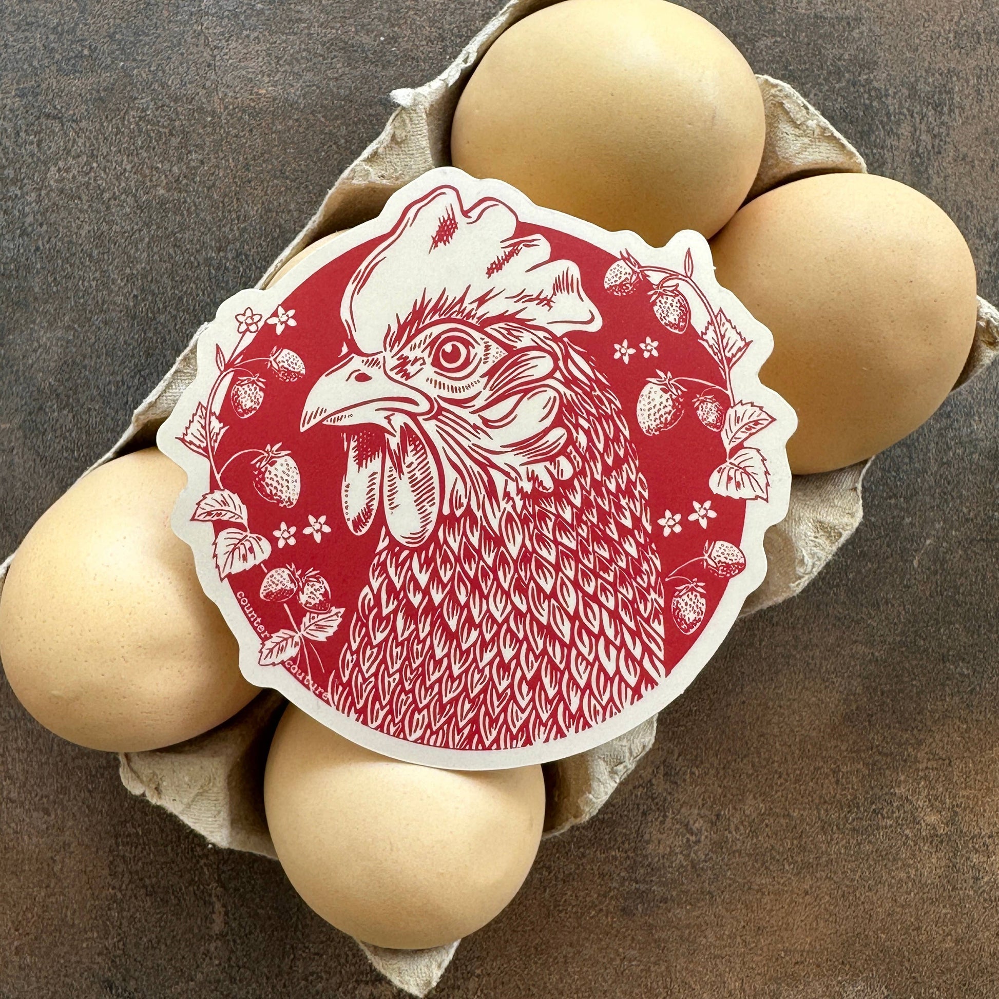Chicken + Berries Sticker | Farm Animal | Decals | Gifts
