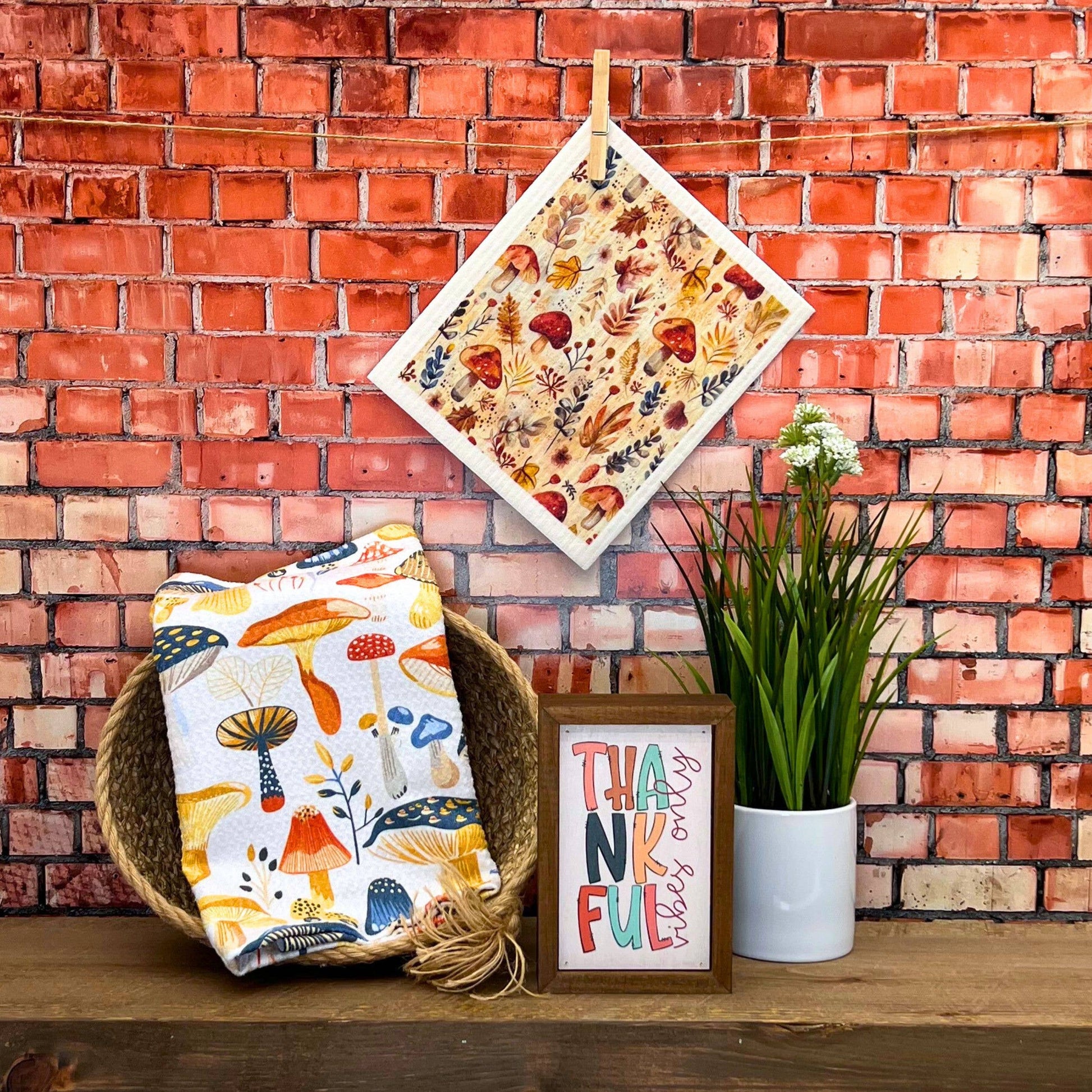 Fall Harvest Mushrooms Swedish Dishcloth - Fall Decor