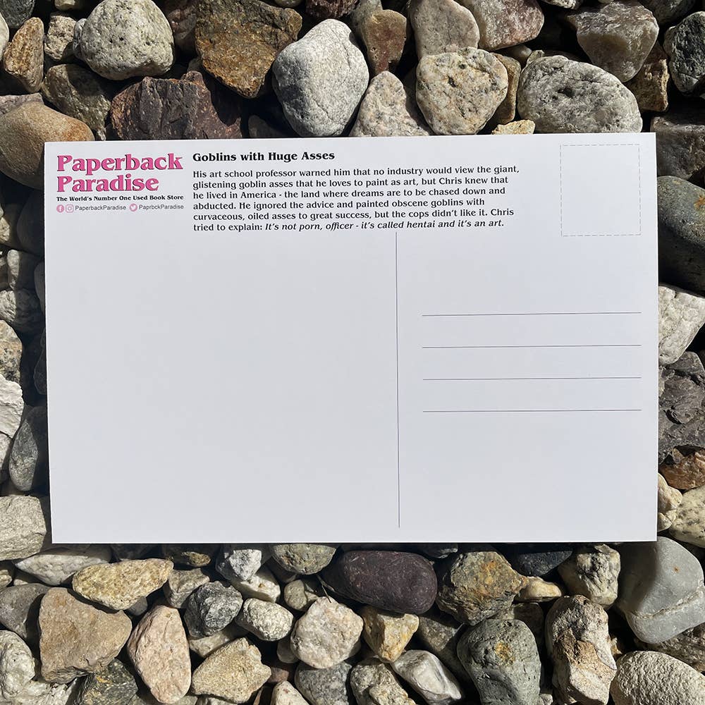 Back synopsis: His art school professor warned him that no industry would view the giant, glistening goblin asses that he loves to paint as art, but Chris knew that he lived in America - the land where dreams are to be chased down and abducted. He ignored the advice and painted obscene goblins with curvaceous, oiled asses to great success, but the cops didn't like it. Chris tried to explain: But it's not porn, officer - it's called hentai and it's an art.