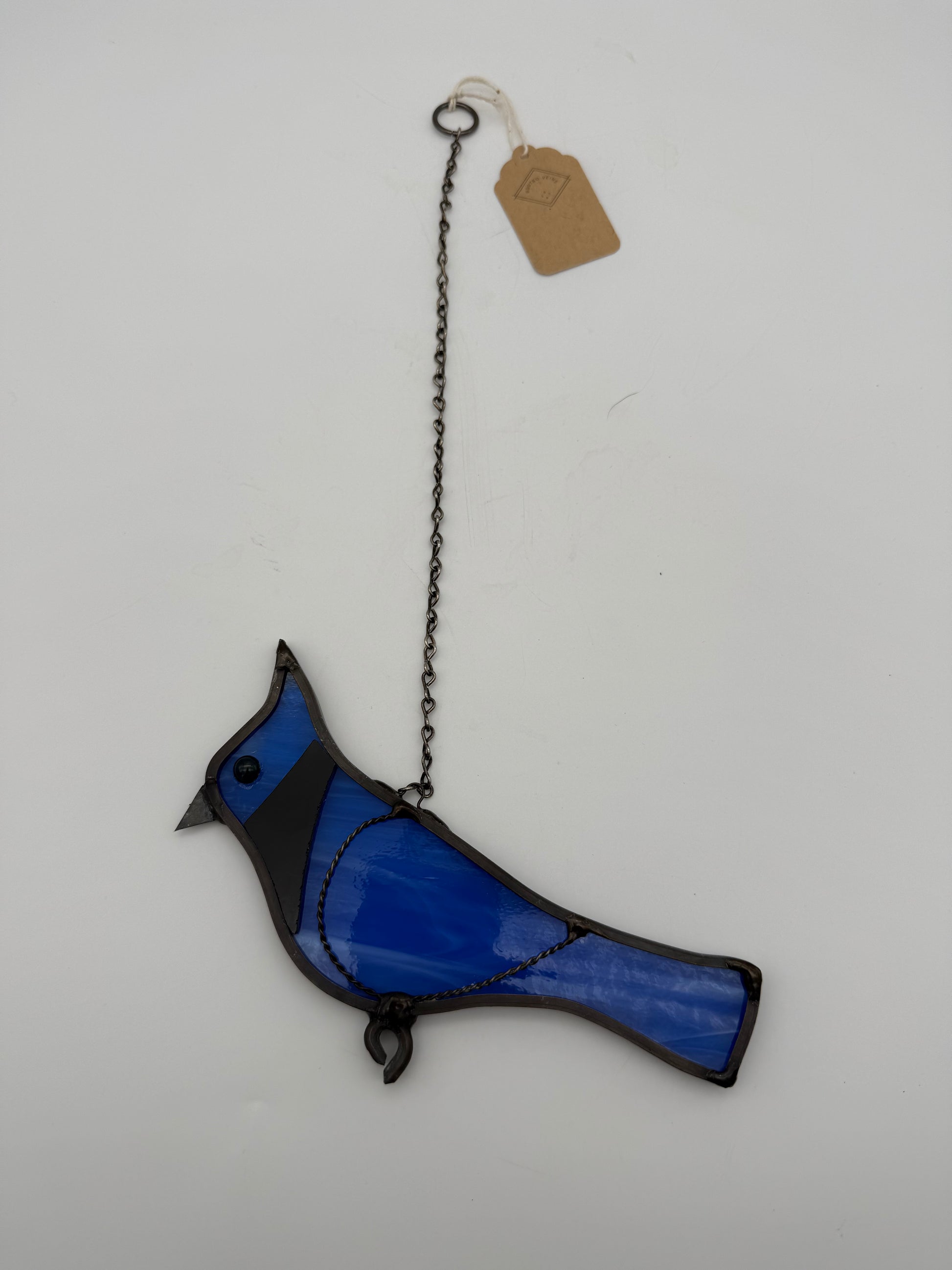 Beautifully crafted stained glass bluejay.