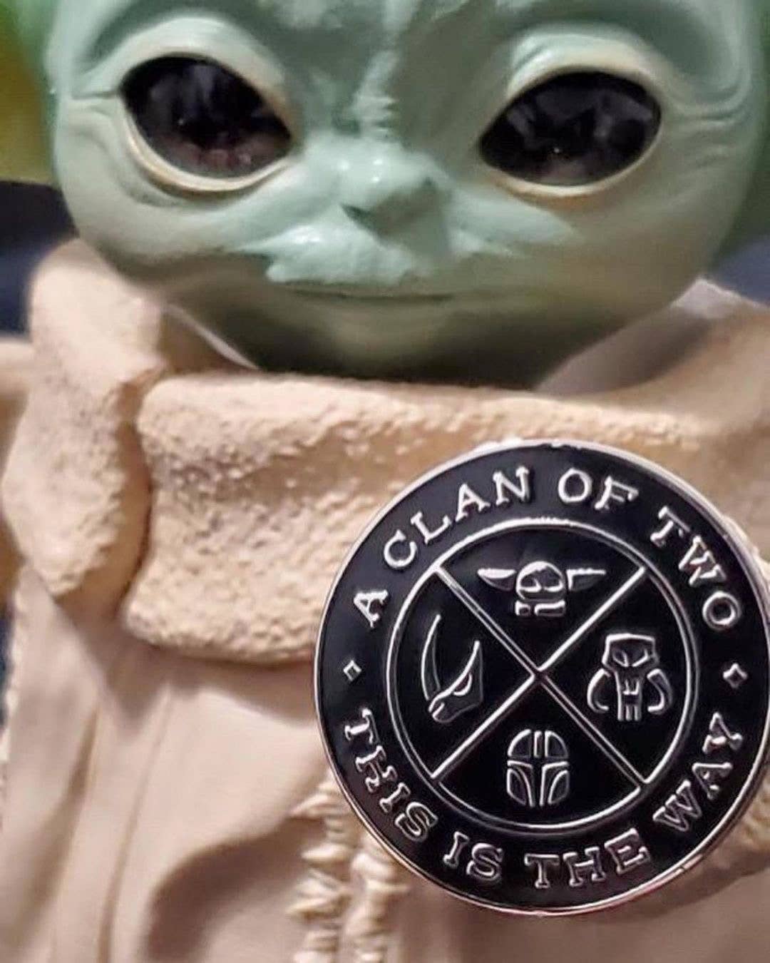 Stylized crest inspired by everyone's favorite clan of two: Din Djarin and Grogu.