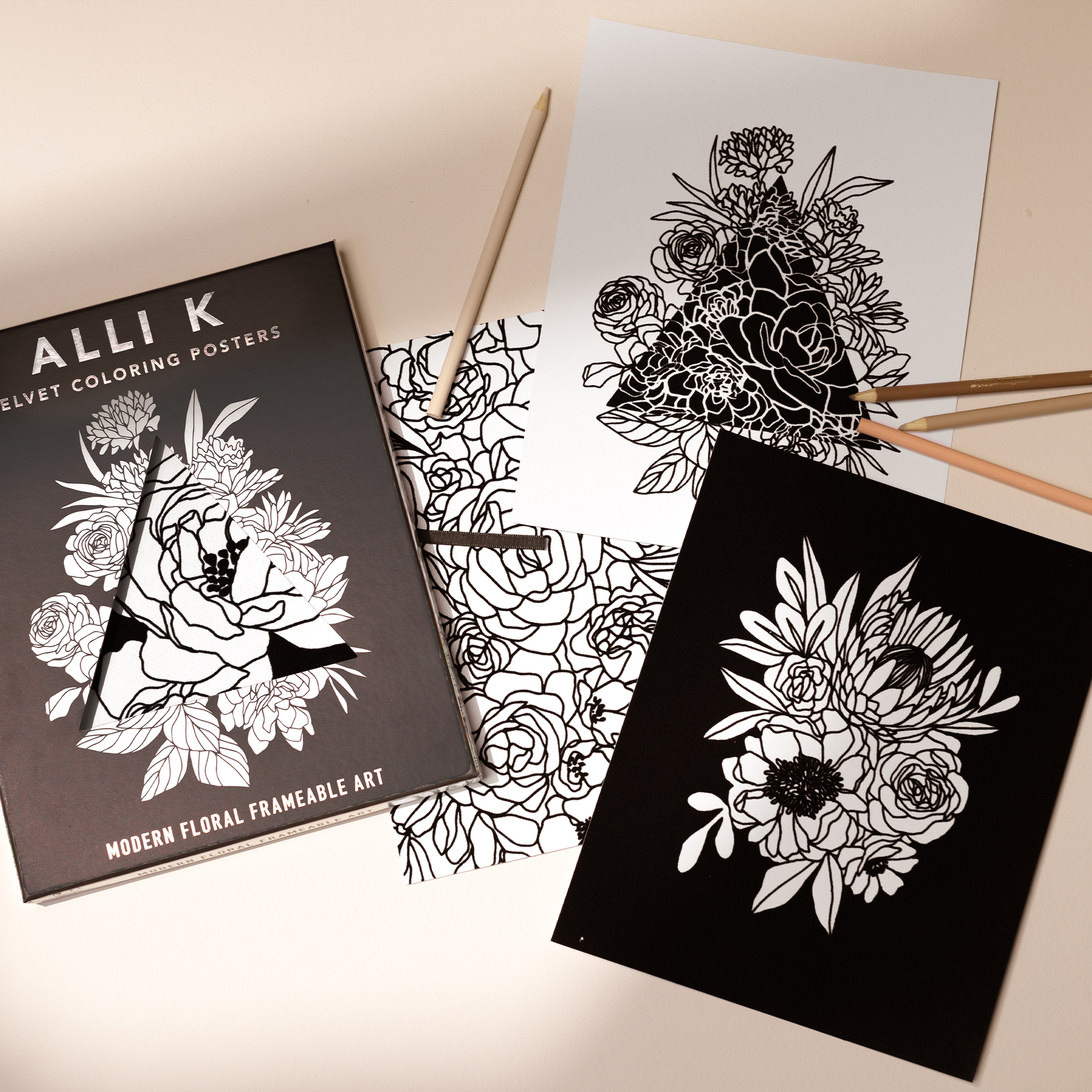 A unique and giftable addition to your art or home decor section, this premium velvet art poster set offers an elevated coloring experience for customers of all ages. Designed by bestselling artist Alli Koch, these floral prints are perfect for framing or enjoying as is. •